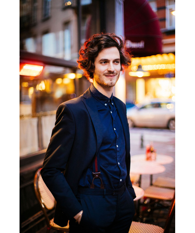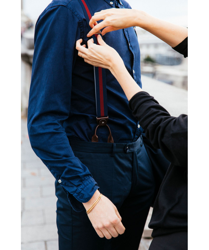 Couleur : Ligne beige et bordeaux sur bleu marine